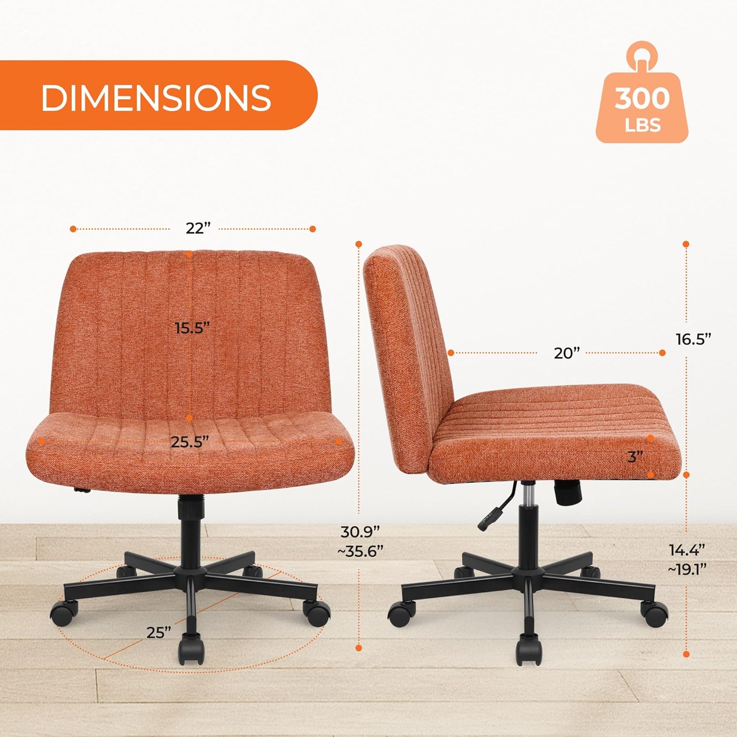 • Stylish & Mobile – Armless design saves space and fits anywhere, while smooth-rolling wheels glide on carpet, tile, or hardwood. Perfect for any room.