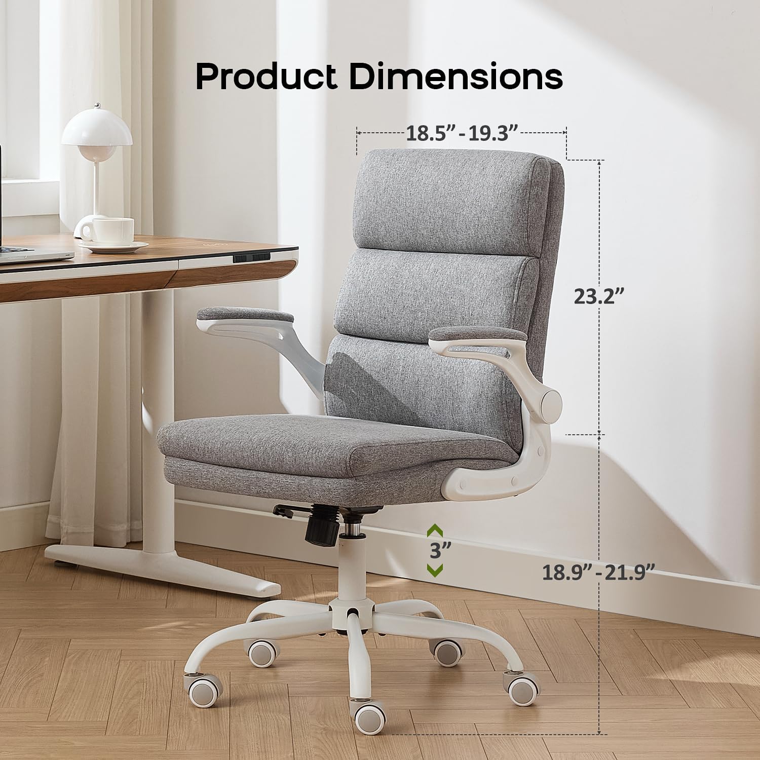 Office Chair Adjustable Desk Chair Mid Back Executive Comfortable Fabric Ergonomic Back Support Home Computer Chair with Padded Flip-up Armrest Swivel Wheels (Cement Gray)