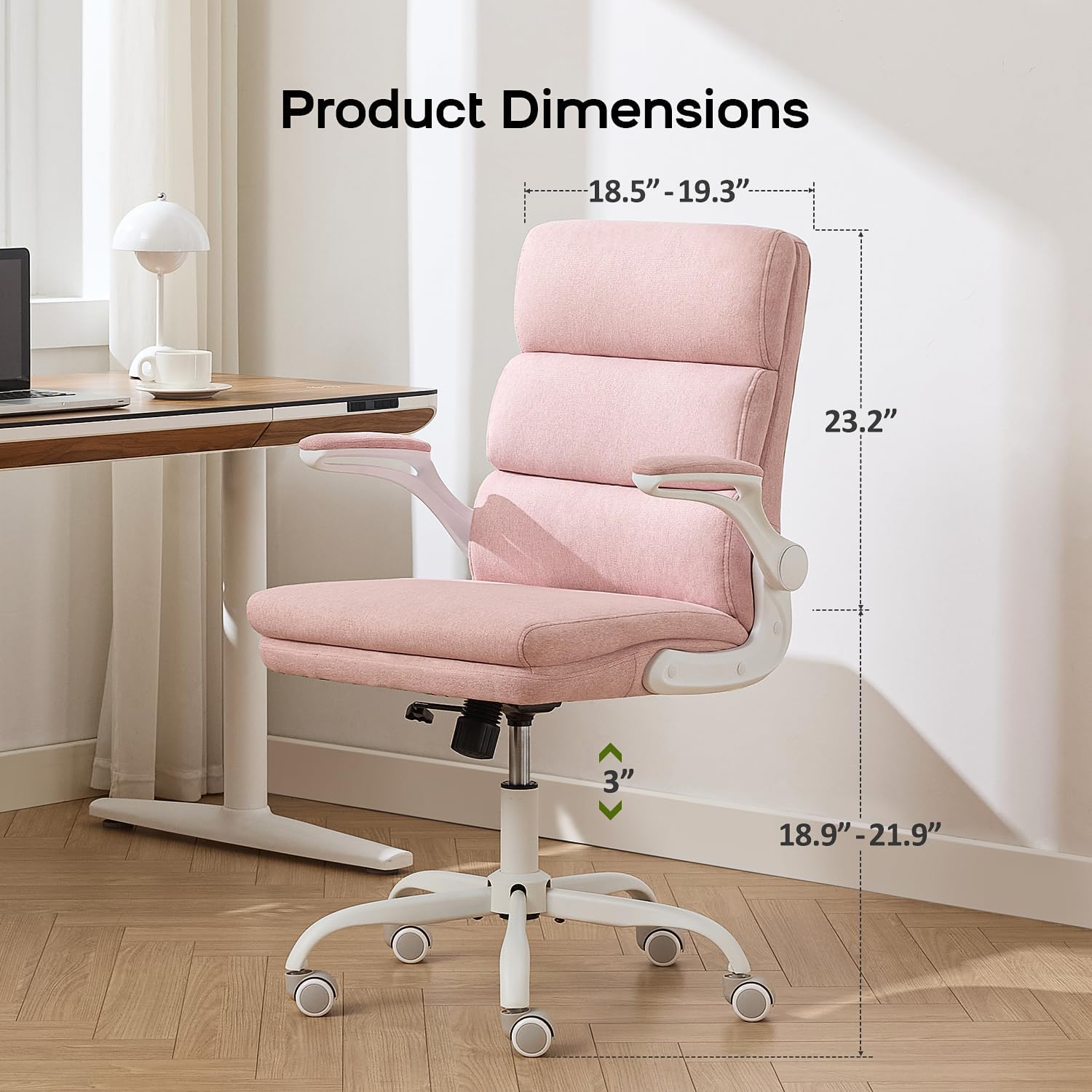 Office Chair Adjustable Desk Chair Mid Back Executive Comfortable Fabric Ergonomic Back Support Home Computer Chair with Padded Flip-up Armrest Swivel Wheels (Pink)